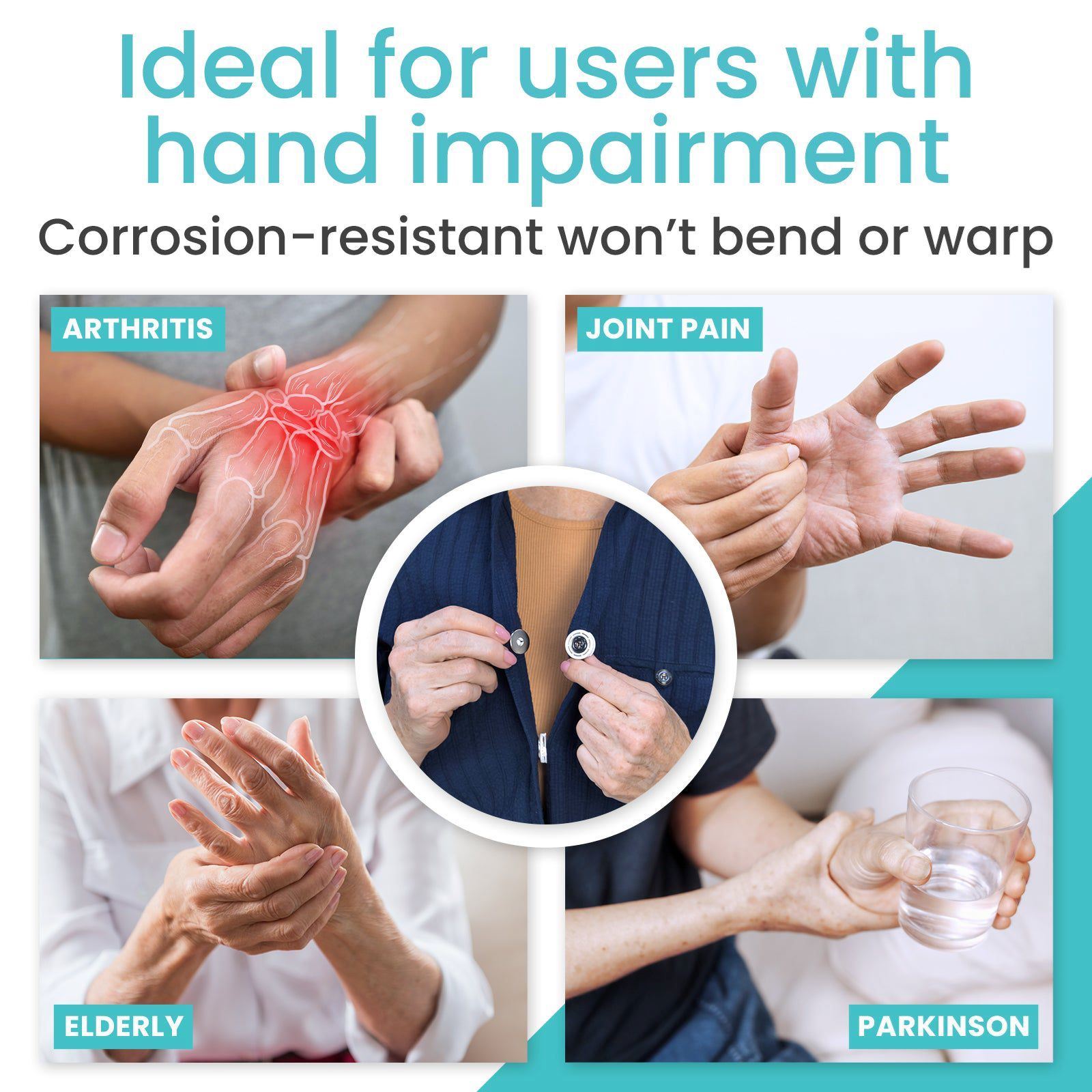 Each order includes 10 button fastening devices, allowing you to adapt multiple pieces of clothing for easier dressing and undressing.Â