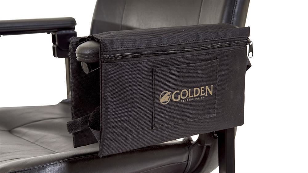 Golden’s Walker Holder can transport a standard or rolling walker and is made of a sturdy metal. It fits on the universal mounting bracket on the back of your scooter.