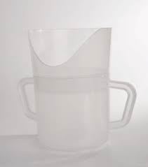 Ideal for people who have oral motor limitations, limited range of motion of the head, neck or upper extremities, or arthritis. The cup is designed to allow the user to drink with little or no shoulder flexion, wrist extension or head/neck movement, even if wearing a cervical collar. Special design provides space for eyeglasses. Dishwasher safe. Plastic. Holds 8 oz. (237 ml).