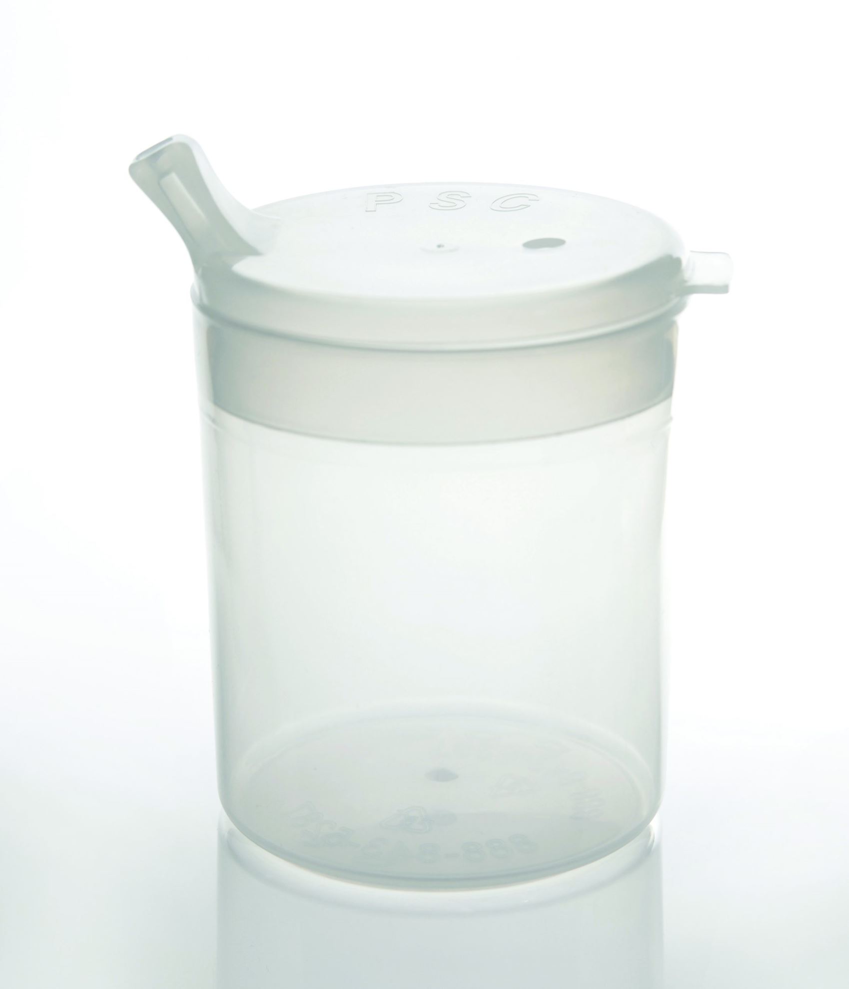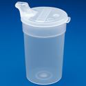 Specially designed lid makes it possible to drink without the need to raise the head. The flow of fluid can be controlled by sipping on the mouthpiece or, in the case where a person does not have the sucking ability, by placing the fingers over the vent holes in the lid. Promotes independent drinking, reduces the need for caregiver assistance, enables the user to drink while lying down and reduces the risk of choking. Spill-resistant even when tipped over. Ergonomic design is easy to hold. Ideal for adults and children. Can be used with hot or cold fluids. Holds 6.8 oz. Dishwasher and microwave safe. Â