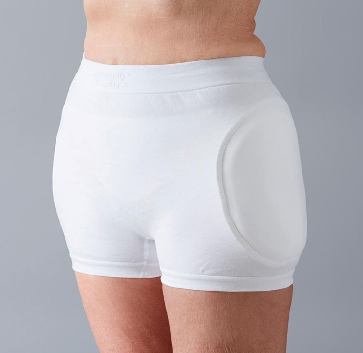 A Hip Protector consists of a pair of impact shields, fitted inside a pair of briefs or a belt that keeps them in place. While a Hip Protector will not prevent a fall, it can effectively and inexpensively prevent hip fractures.