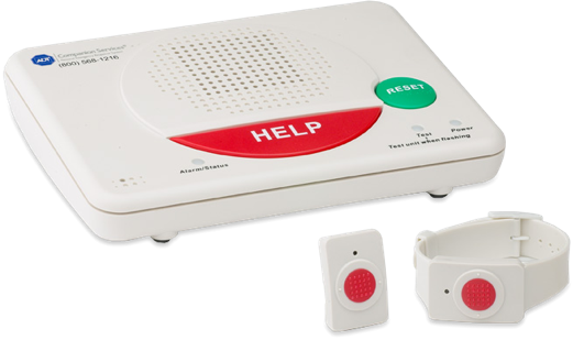 • Equipped with a waterproof pendant or wristband that features a personal help button.