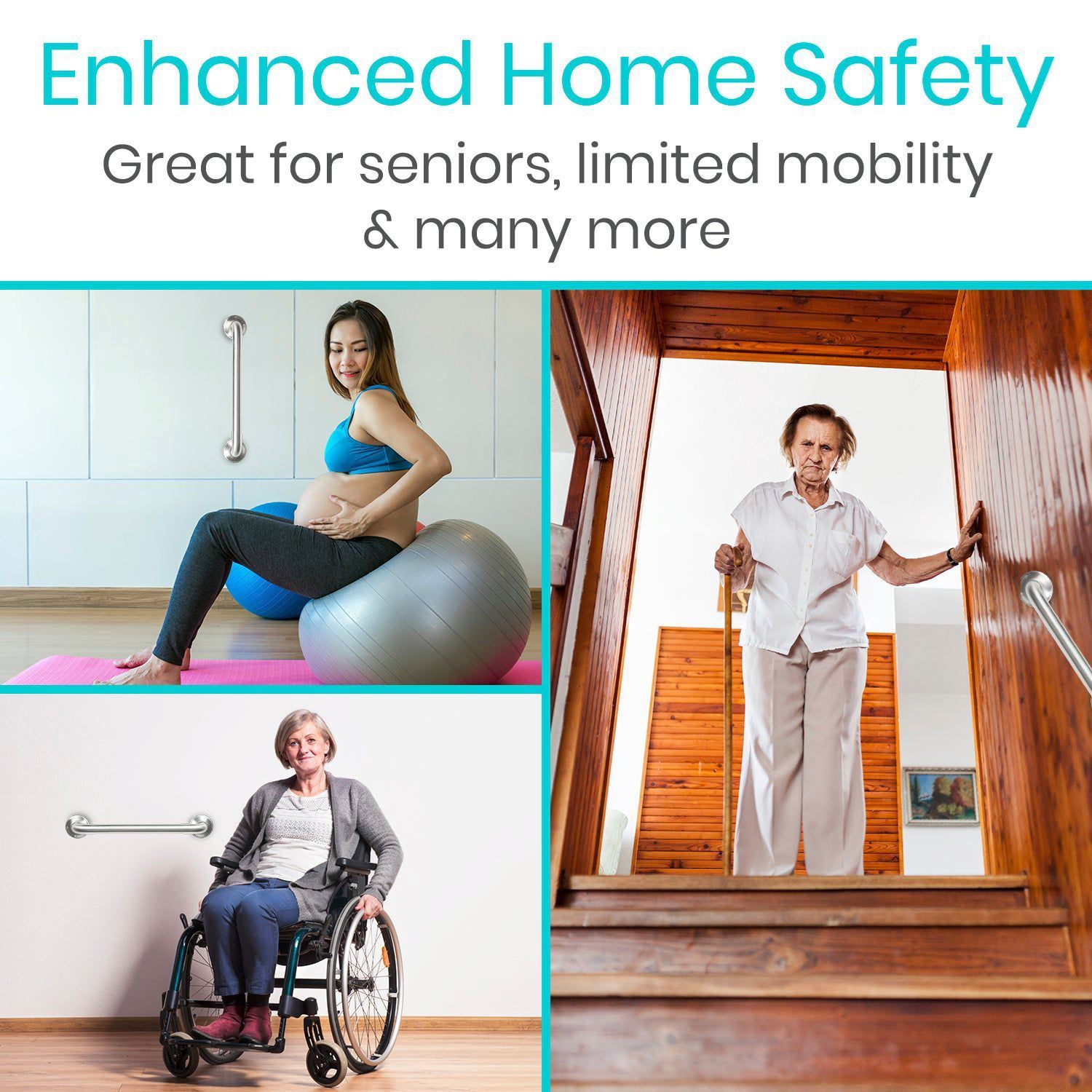 The metal grab bar can be placed in any position, horizontally, vertically or diagonally for optimal support in the desired location.