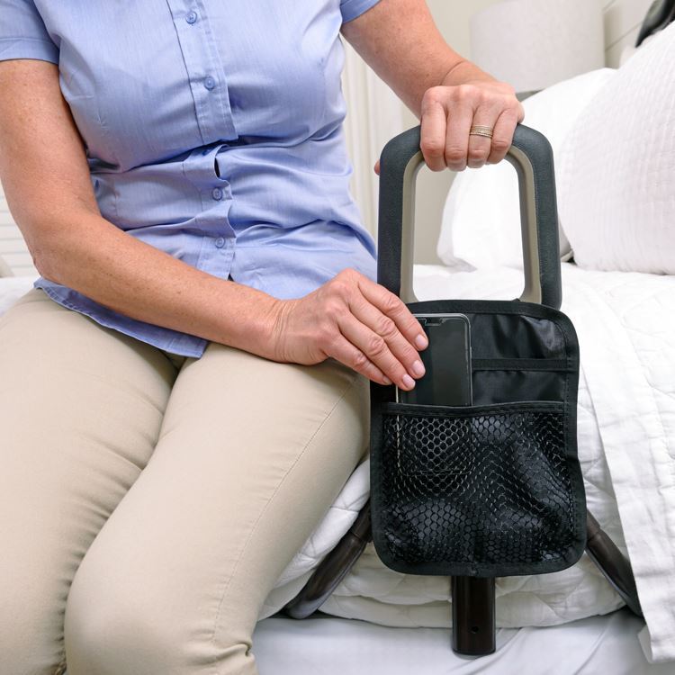 PT BedCane SKU: P2100 $104.99 Qty: Add to cart Custom wishlist OK Add to wishlist Add to compare list Email a friend The PT BedCane from Stander combines functionality with style. This low-profile bed handle is perfect for anyone needing assistance in and out of bed. The ergonomic handle allows the user to apply a two-handed grip, providing ultimate leverage when needing bedside assistance. Features & Benefits SAFETY HANDLE: Allows for 2 handed grip to get out of bed ORGANIZER POUCH: Provides storage space for small items ADJUSTABLE: Adjusts 19″-25″ in height to fit 10″- 17″ mattresses BED TYPES: Works with most traditional home beds COMPATIBILITY: Not intended for use on adjustable beds EASY INSTALLATION: Slides between mattress and box spring SAFETY STRAP: Attaches handle to bed frame to prevent sliding Specifications Height Adjustments From Mattress Base to Top of Handle: 19.25” to 25.25” Accommodates Mattress Heights: 10” to 17” Handle Width: 6.5″ Depth of Horizontal Support Structure Under Mattress: 19” with non-skid rubber surface Weight of Product: 5.6 lbs Weight Capacity: 300lb Made of: Steel frame with durable powder coat finish Package Dimensions: 2.625″ L x 8.25″ W x 21.25″ H: 6 lbs Case of 4 Dimensions: 11″ L x 8.75 W x 21.75″ H: 24.5 lbs Product tags stander (3) , bedroom (6) , bedrail (8) , Bed Rail (9) , Bedcane (2) , Standing Support (5) , pt bedcane (1) , pt (1)